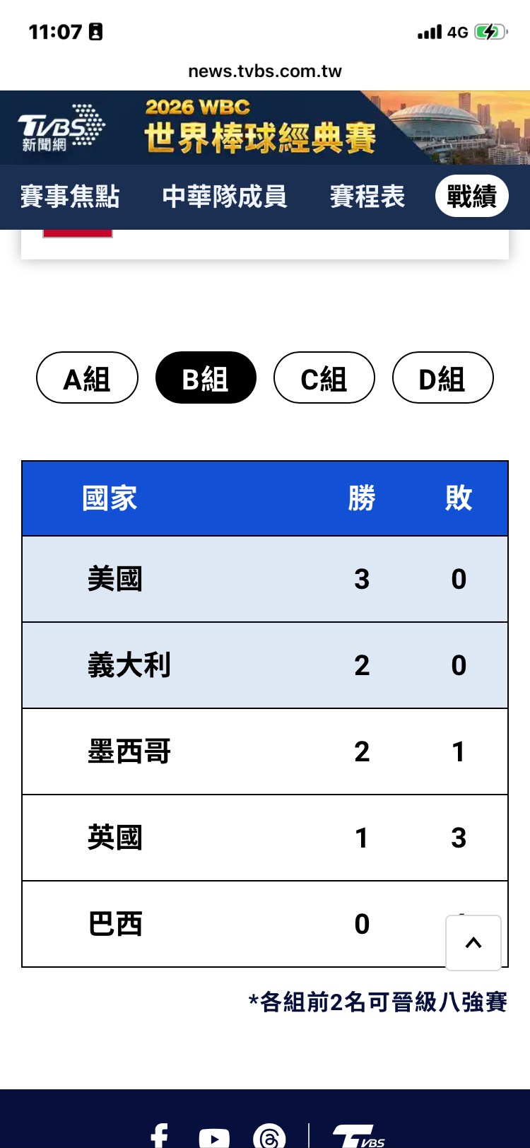 經典賽 >> 美國輸意大利8分 可能被淘汰