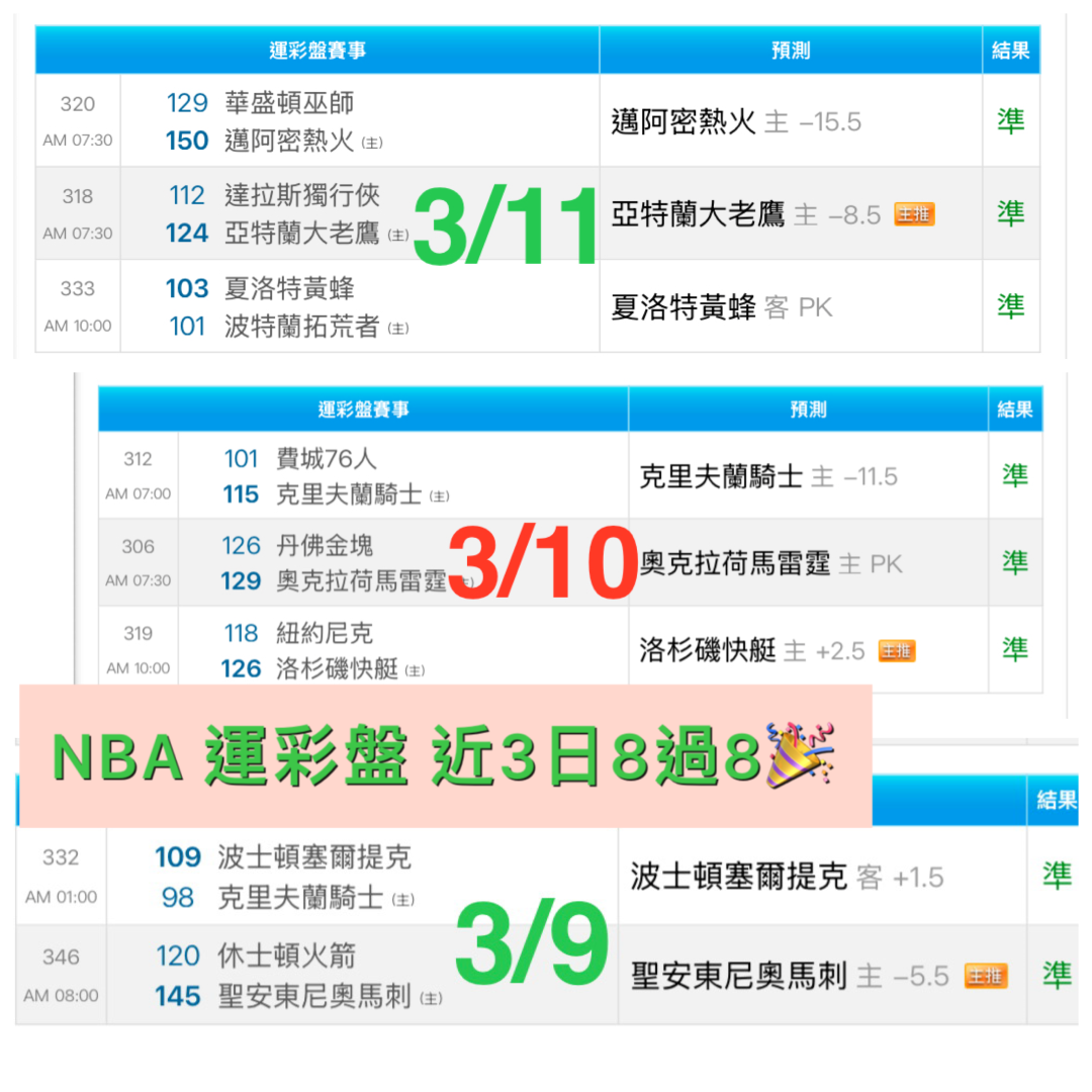 NBA >> 3/12🏀🌟🎯《NBA推薦》NBA 運彩主推近11過10