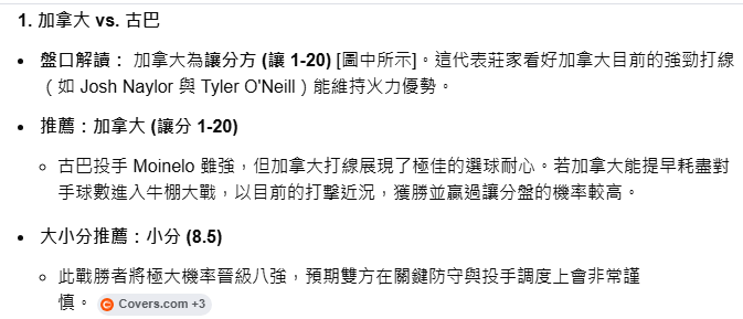>> 3/12 WBC3場 AI推薦 今日反壓需慎選!