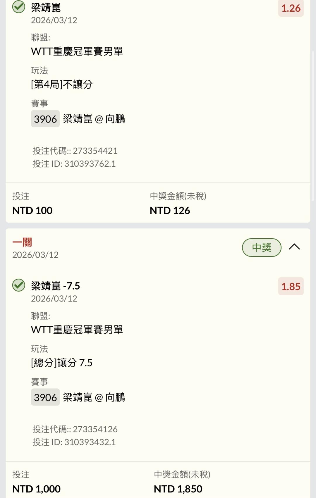 乒乓球 >> 重慶32強(男) 13:25場中
