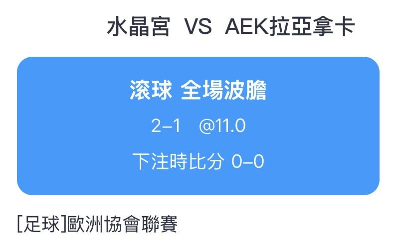水晶宮 2~3球,正比2:1(娛樂單)