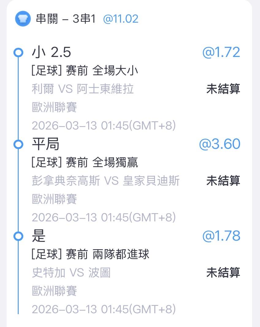 你只買串關 沒買單場嗎?