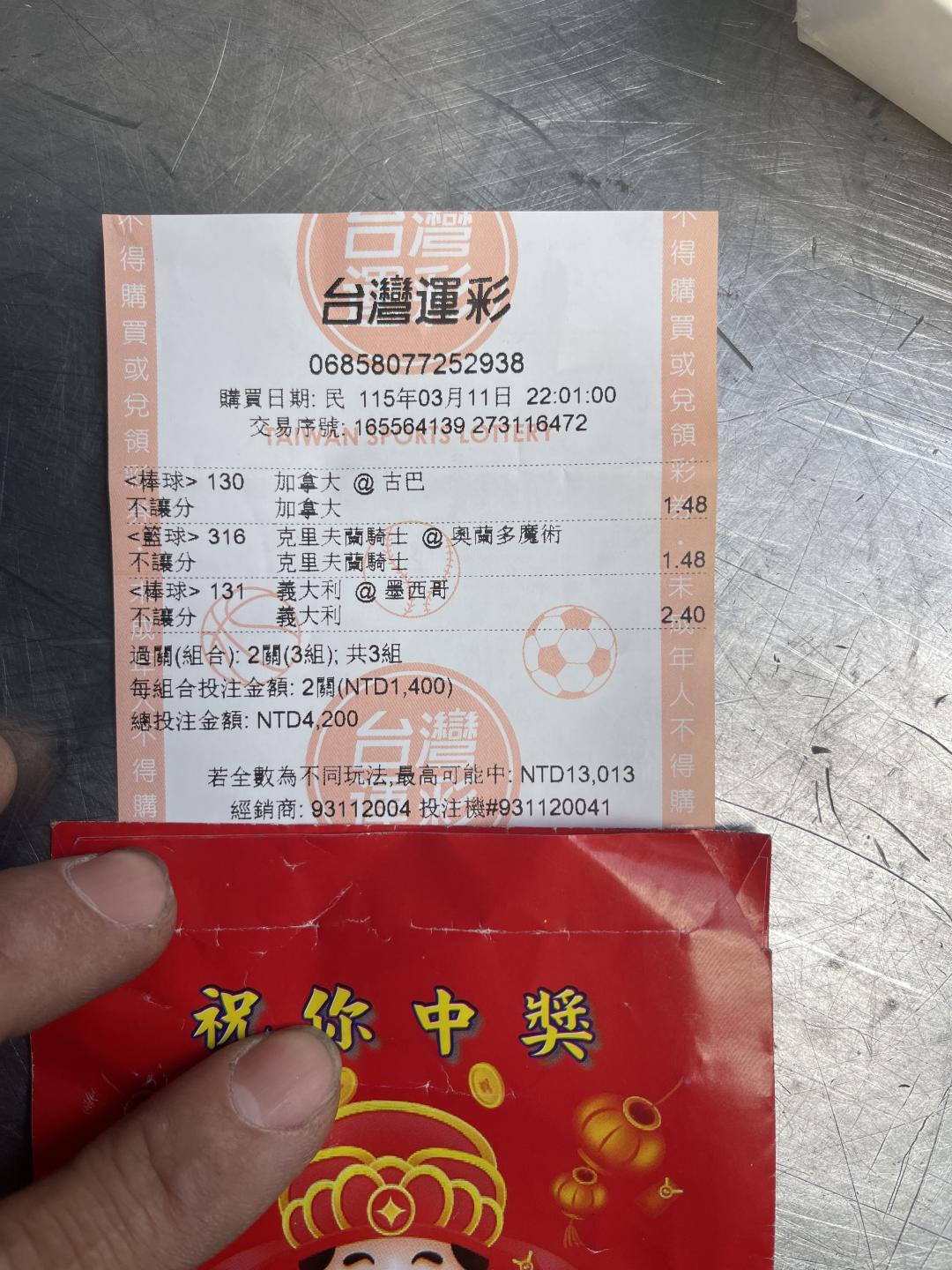 過關炫耀 >> 3/12買的過關組合