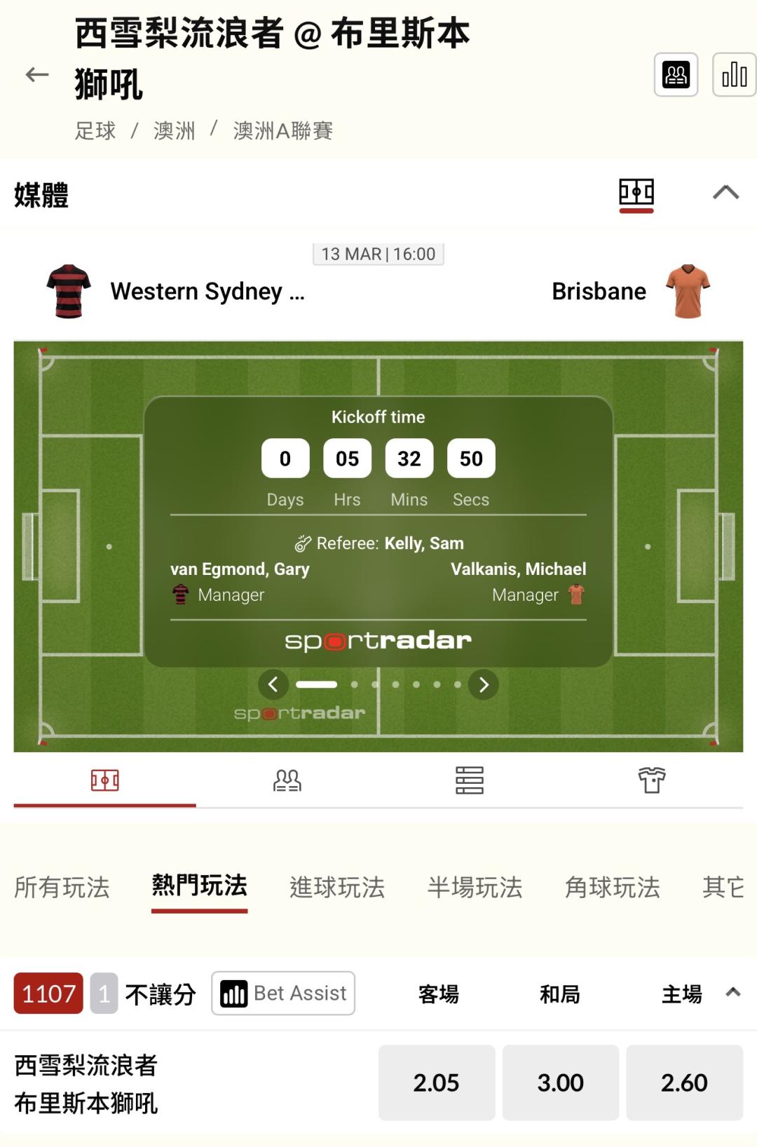 >> 下午澳甲「單場 新台幣 10萬」西雪梨流浪者 VS布里斯本獅吼,最近有跟足球都知道,真實下注