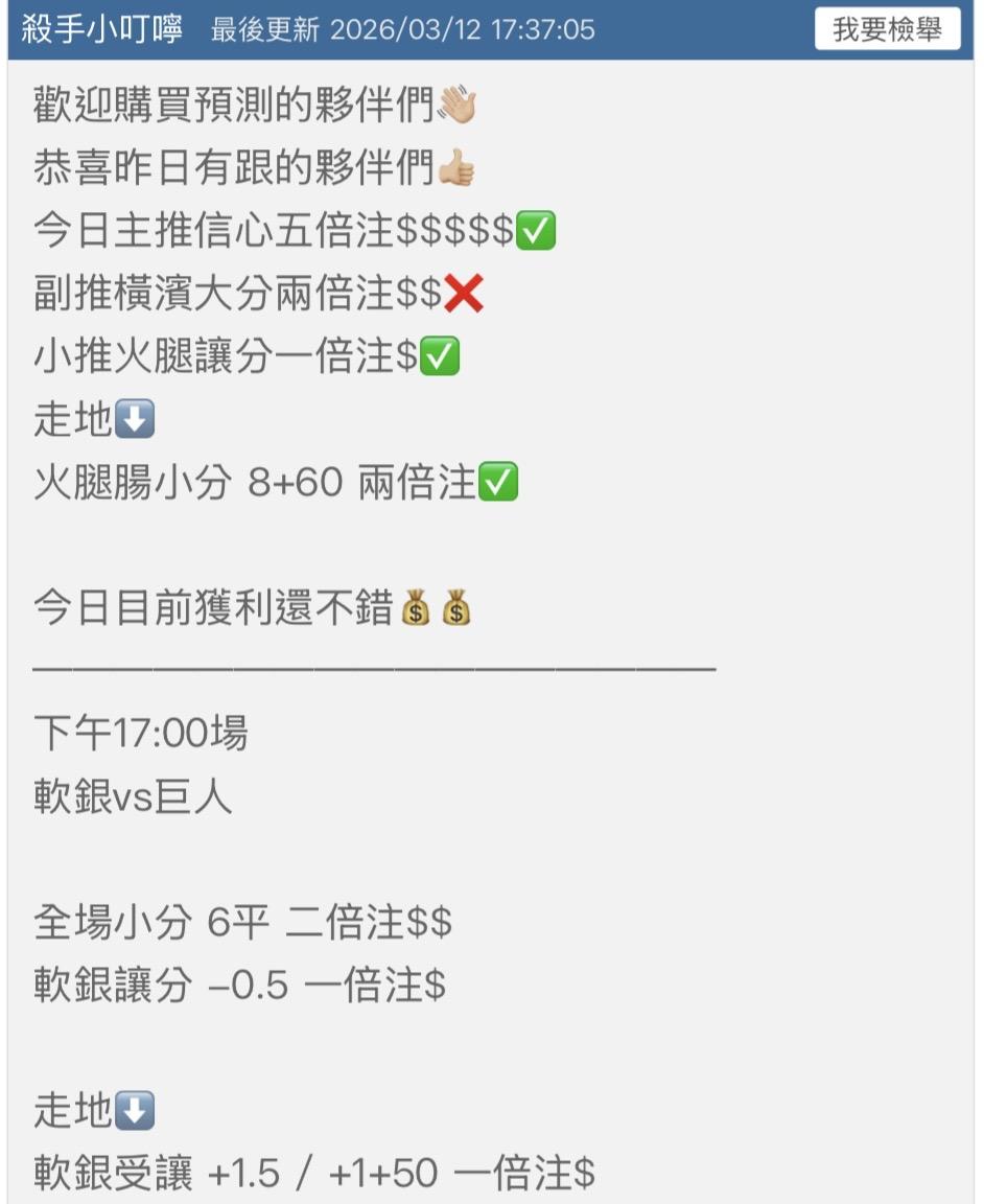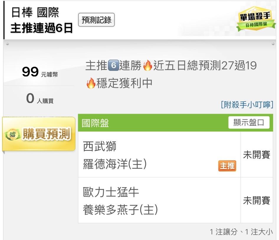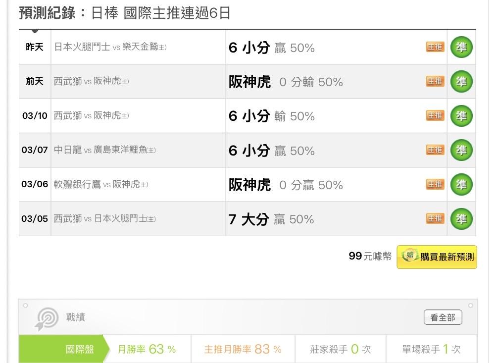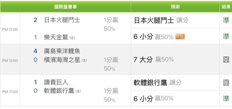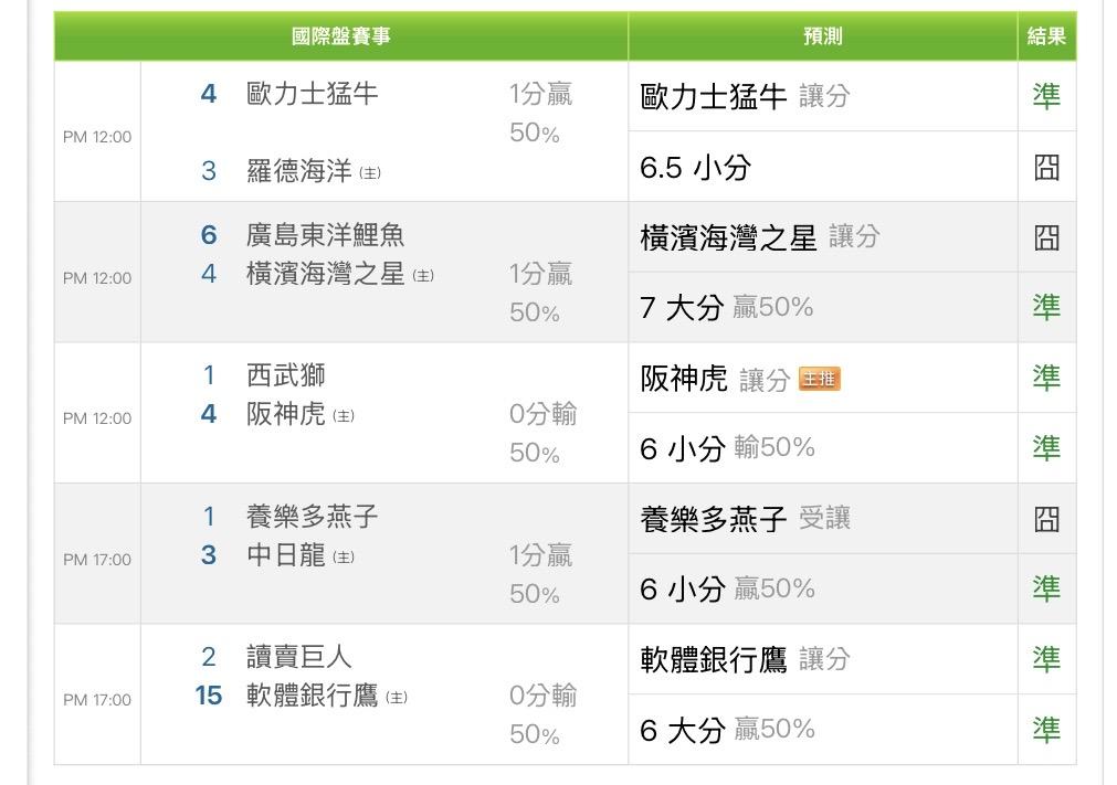 日本職棒 >> 國際主推6️⃣連勝🔥近五日總預測27過19