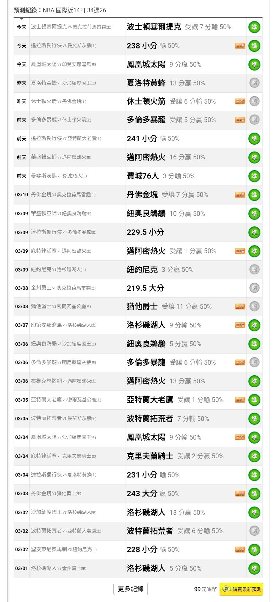 >> 運彩主推【近15日過13】~近14天贏12天【34過26】