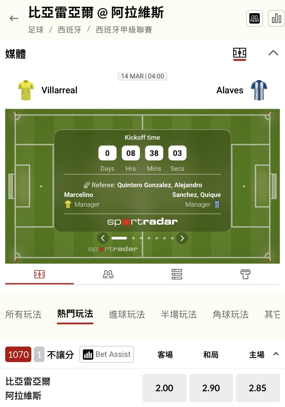 >> 半夜西甲「單場 新台幣 10萬」比亞雷亞爾 @ 阿拉維斯,本週全部帳目目前狂贏新台幣74萬