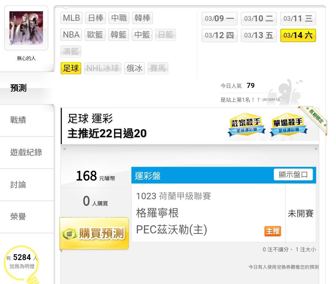 足球 >> 主推近22過20……半夜3點荷甲一場大小分釘孤支