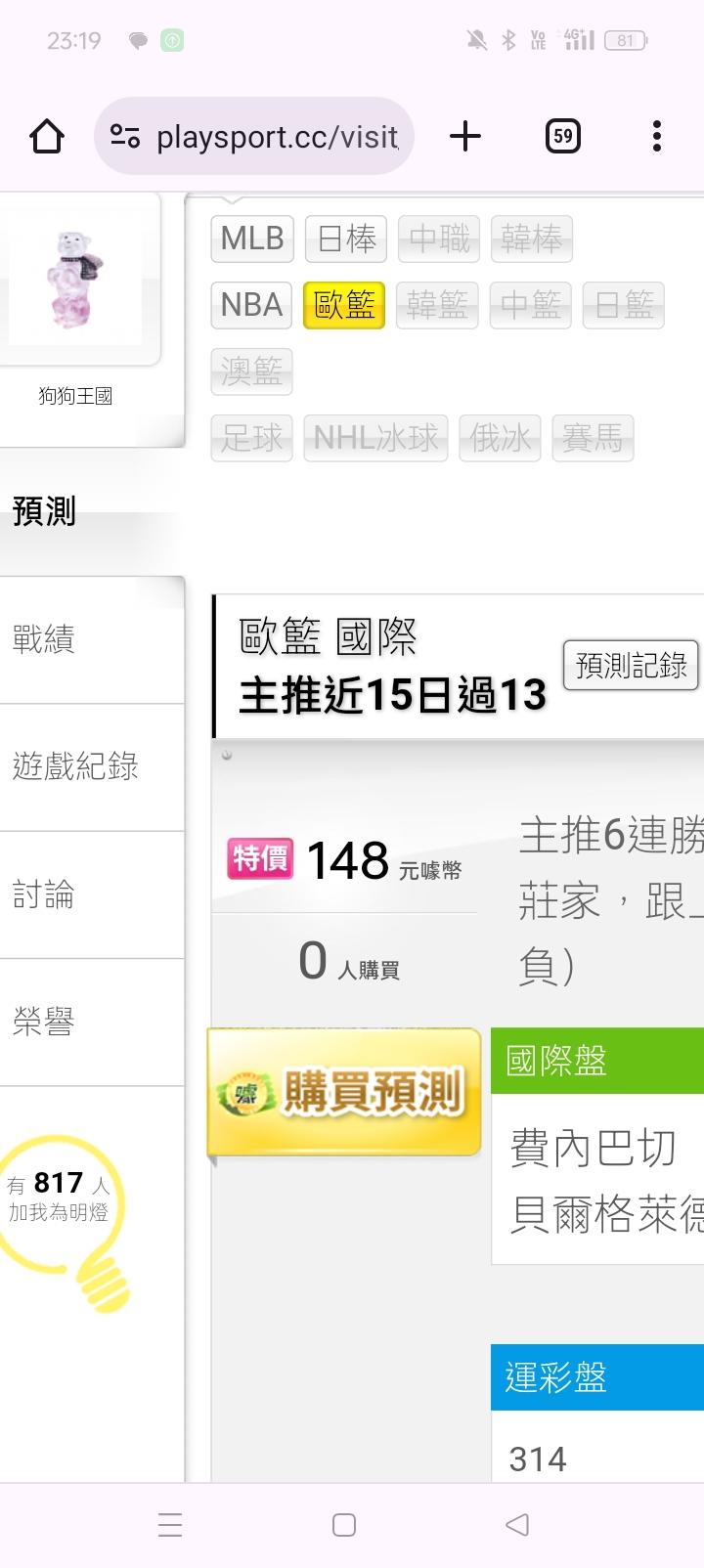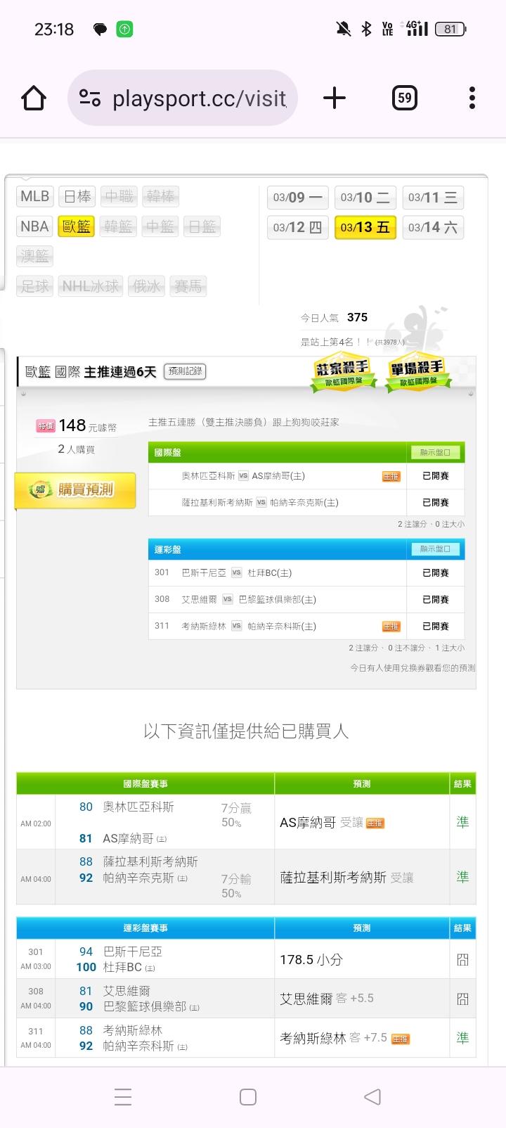 歐洲職籃 >> 歐洲籃球本月雙主推勝率100%,主推6連勝,跟上旺旺叫🥳