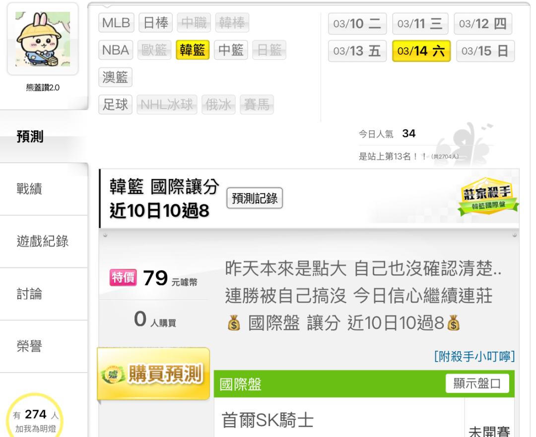 >> 3/14昨天真的被自己弄倒, 國際盤 讓分 近10日10過8 💰今日信心繼續連莊💰特價💰