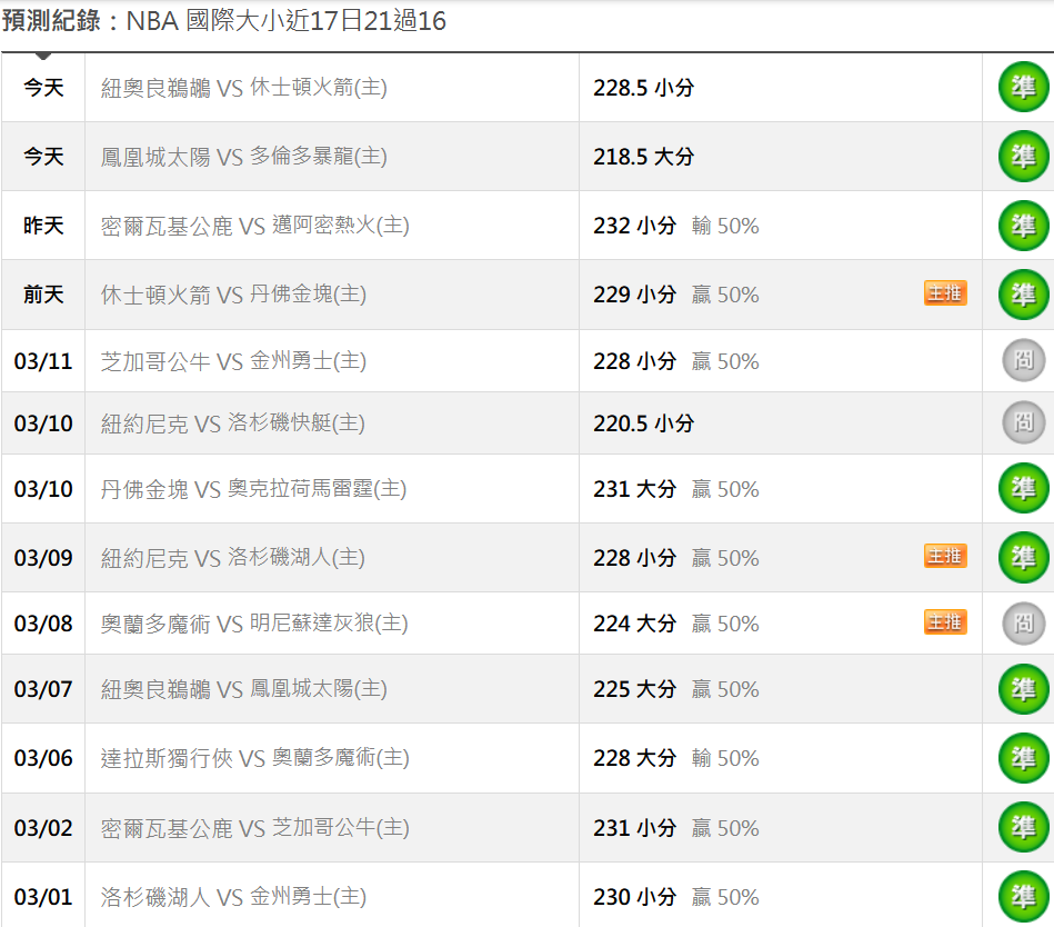 NBA >> 3/15國際 主推連過3日【雙盤全過=6個準】【小叮嚀串關全過】美國星期六大分版路推薦!