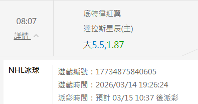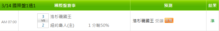 NHL冰球 >> 3/15 冰球推薦【國際盤主推近21日過19】【國際主推信心度高】【免費場歡迎參考】