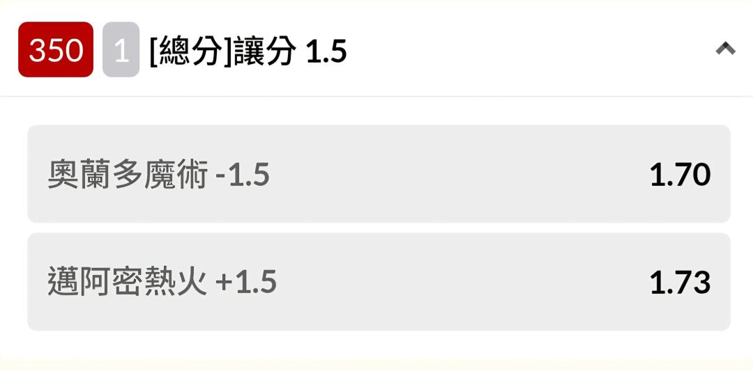 場中盤口兩隊讓方開很接近