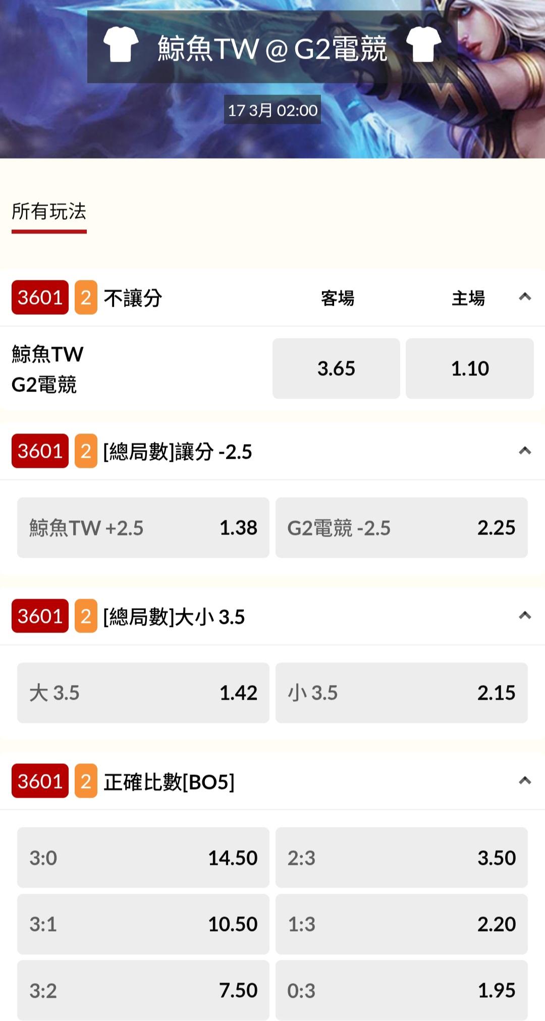 電競 >> 03/16『無懼之狐X @ BLG戰隊』『鯨魚TW @ G2電競』