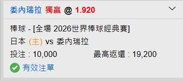 經典賽 >> 委內瑞拉 走地PK最高幾倍?