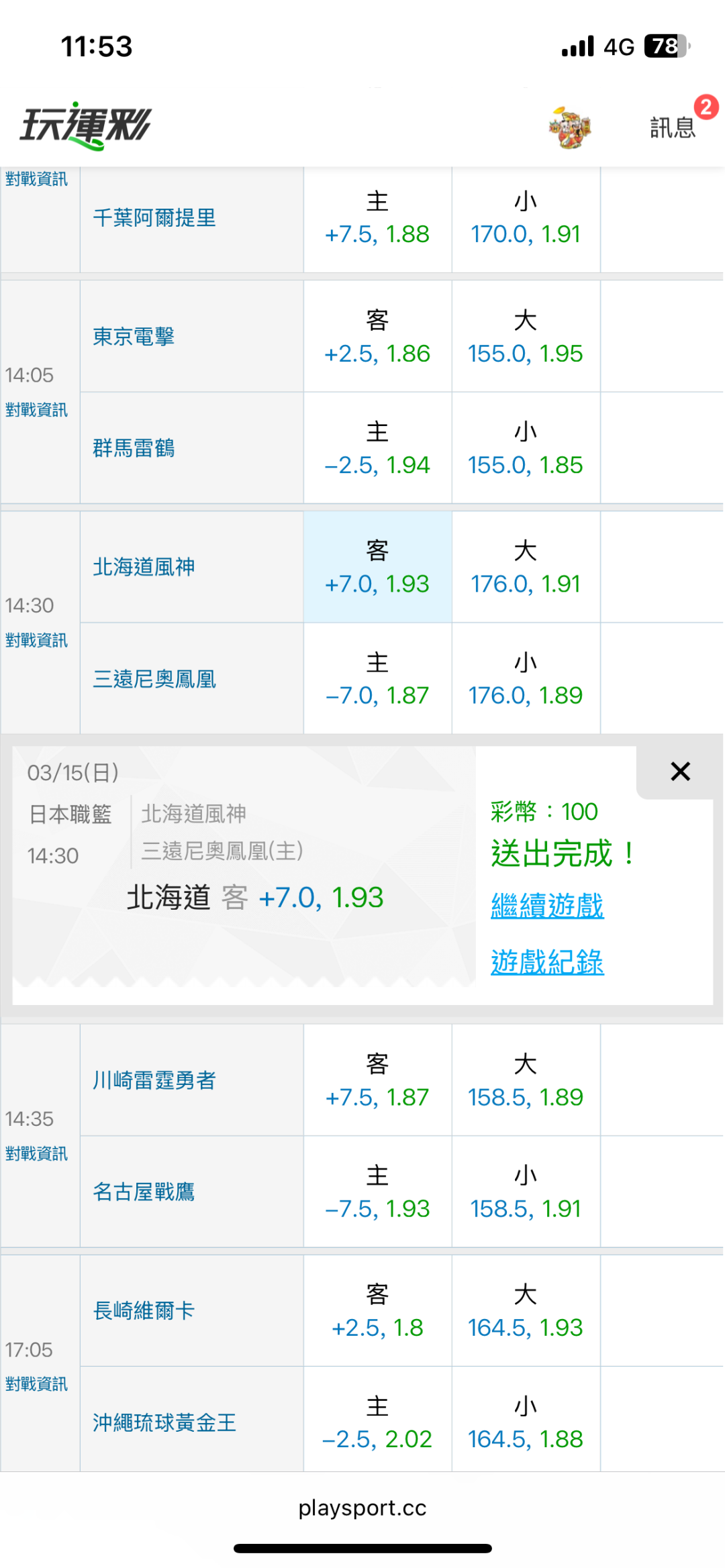 >> 3/15東台日籃國際盤【主推連過2日】主推信心滿滿(貓場) 特價79 -拼日籃國際主推連贏3天~