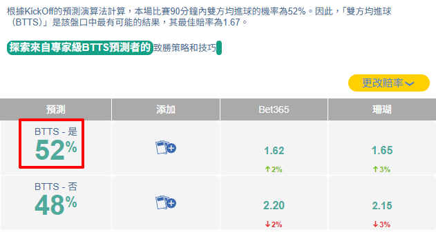 基本面分析:最佳預測+讓球盤口+兩隊得分+總進球數