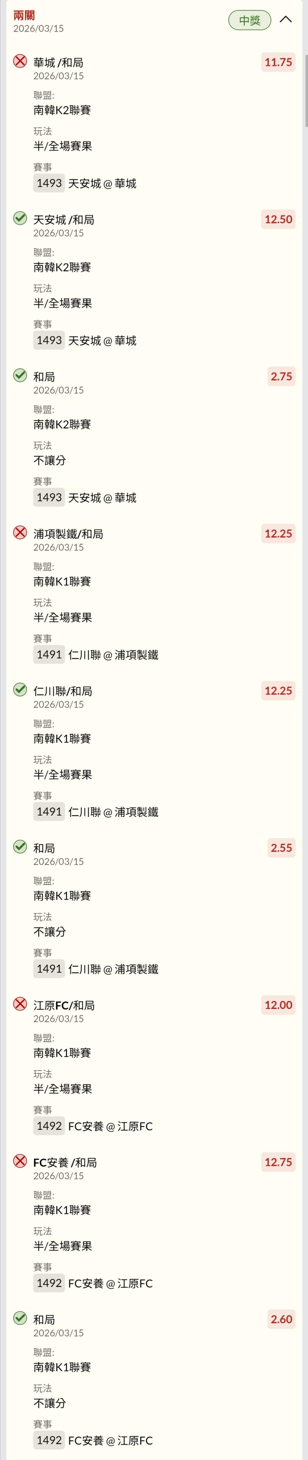 >> 不是很愛和? 百倍半場和和單