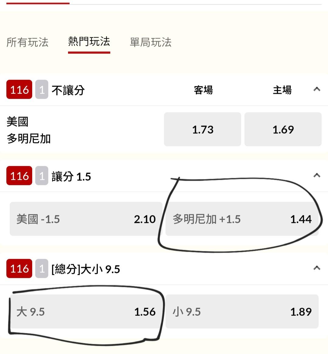 運彩盤:多明尼加<+1.5>,總分<9.5>