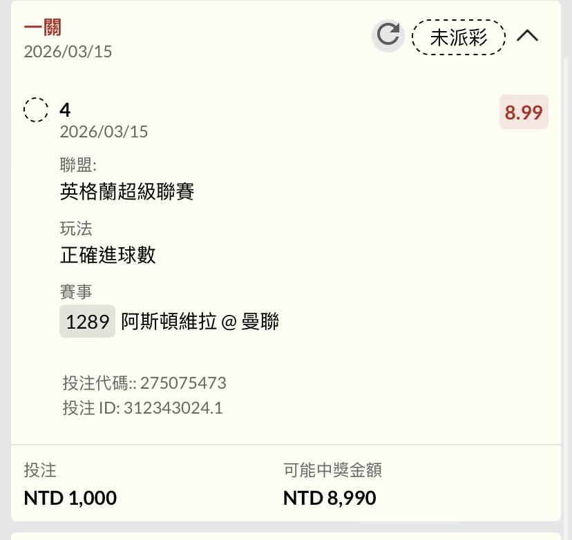 水啦3-1,我的獨贏穩了