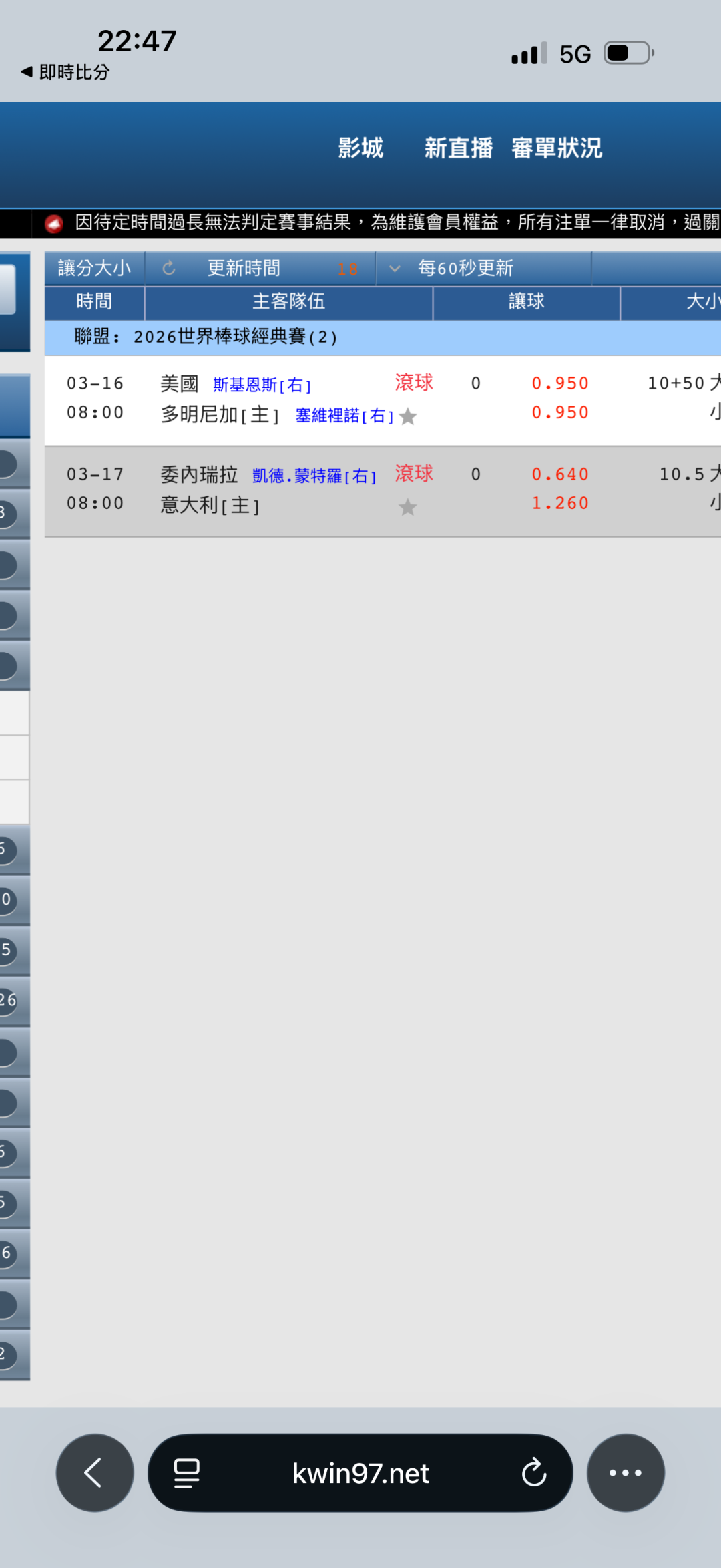 早上盤口看 美國讓球 1+95 現在盤口 變0球了