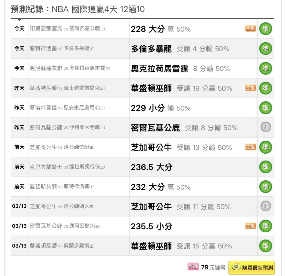 NBA >> 《主推連過5天》《主推連過5天》《主推連過5天》連贏四天12過10