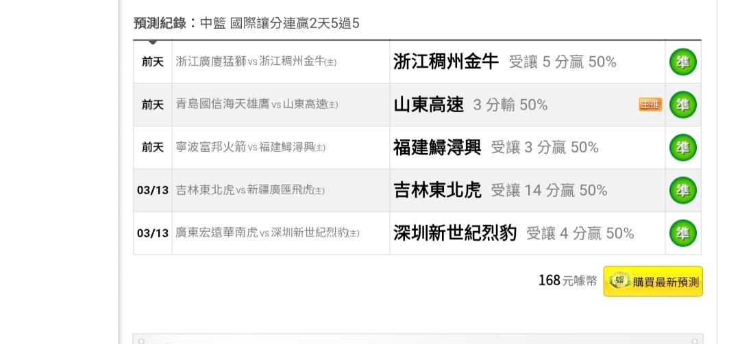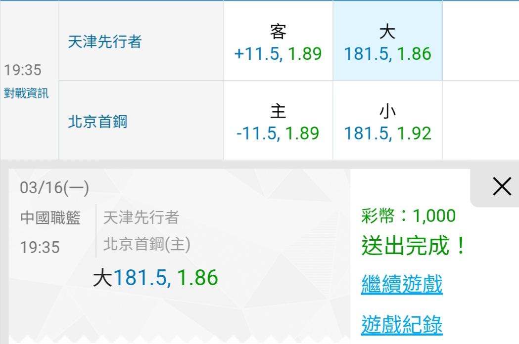 中國職籃 >> 讓分盤連贏2天5過5……今天一場主推釘孤支