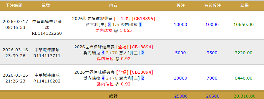 國際棒球 >> WBC委內瑞拉vs義大利3月17日