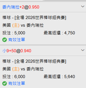 國際棒球 >> 美國對委內瑞拉,冠軍預測!!!