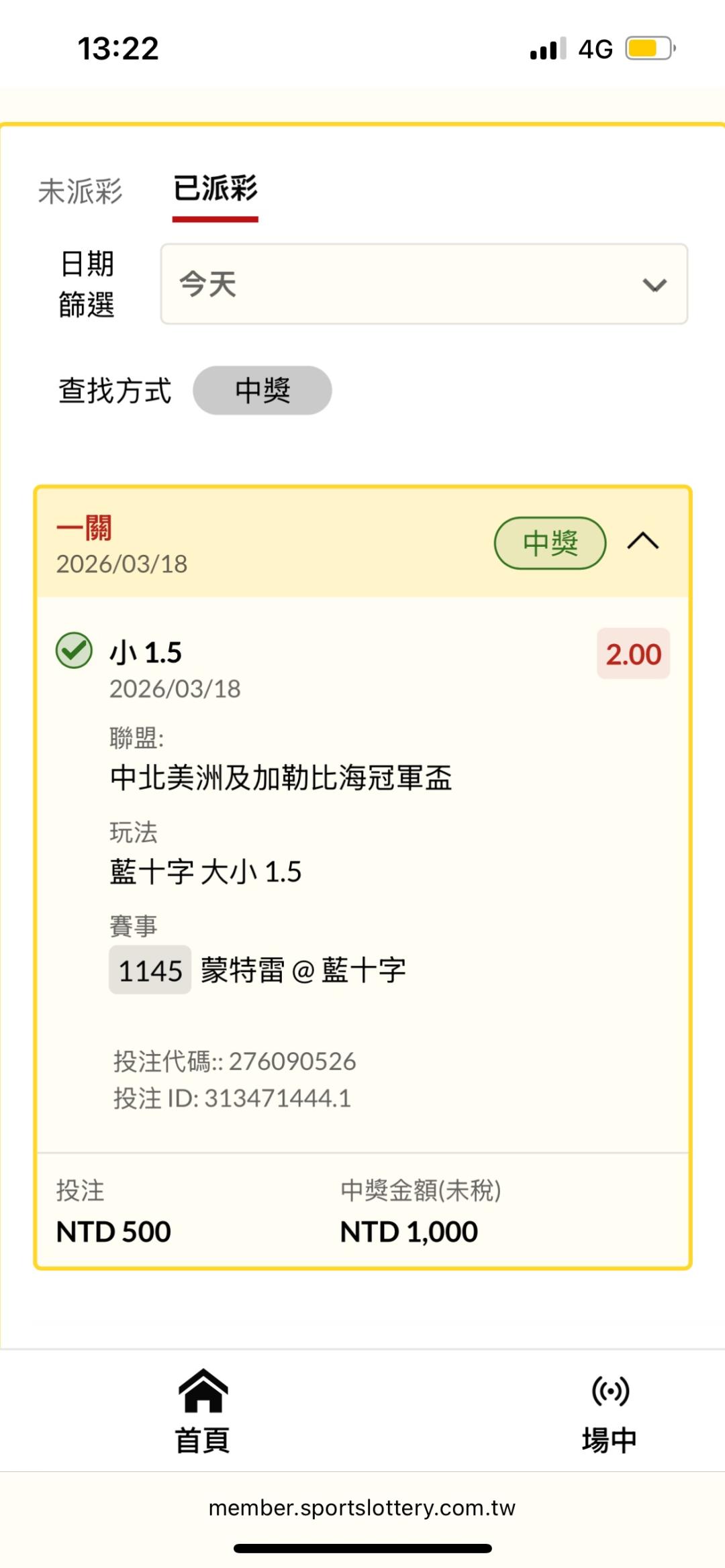 足球 >> 藍十字單邊1.5小