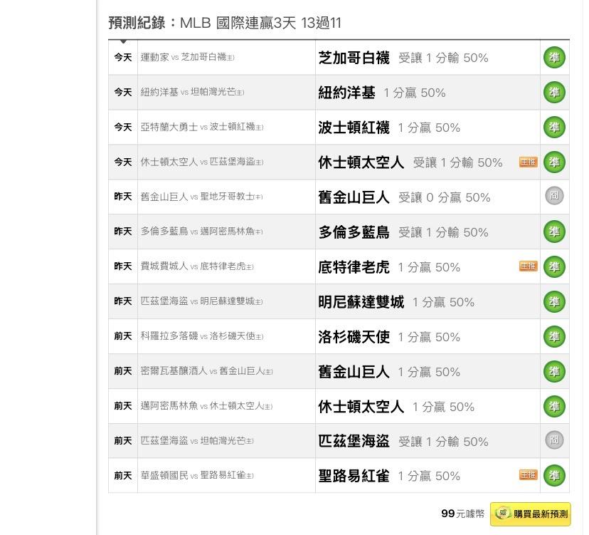 >> 連贏3天,13過11,今天4過4,轟