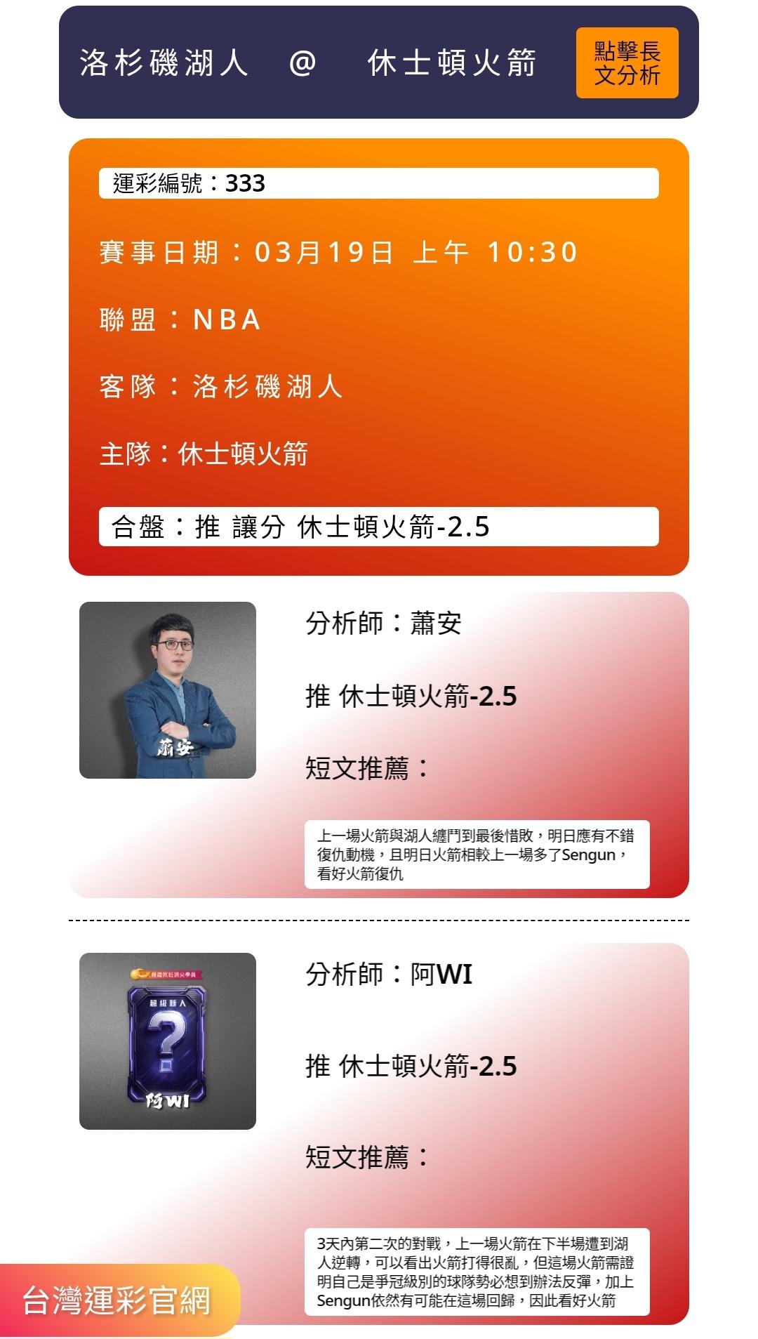 NBA >> 03/19 洛杉磯湖人 V.S 休士頓火箭 勇者無懼