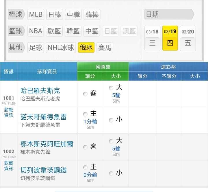 俄羅斯冰球 >> ⭐⭐3/19俄冰盤口