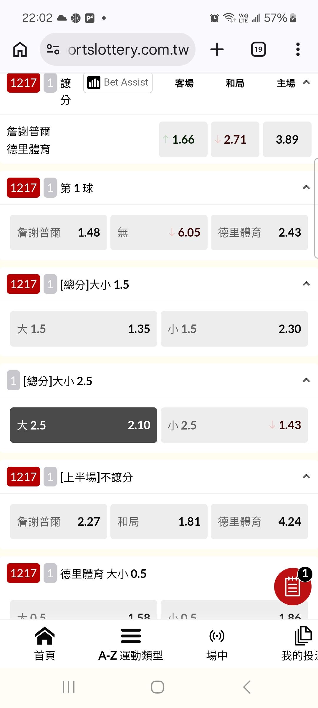 足球 >> 來喔~22:00詹謝。德里。印鈔票