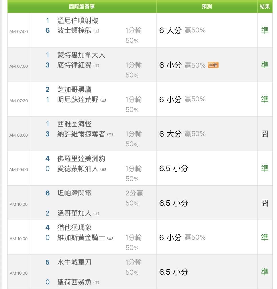 NHL冰球 >> 主推二連勝🔪近兩日預測15過12🔪明日特價中