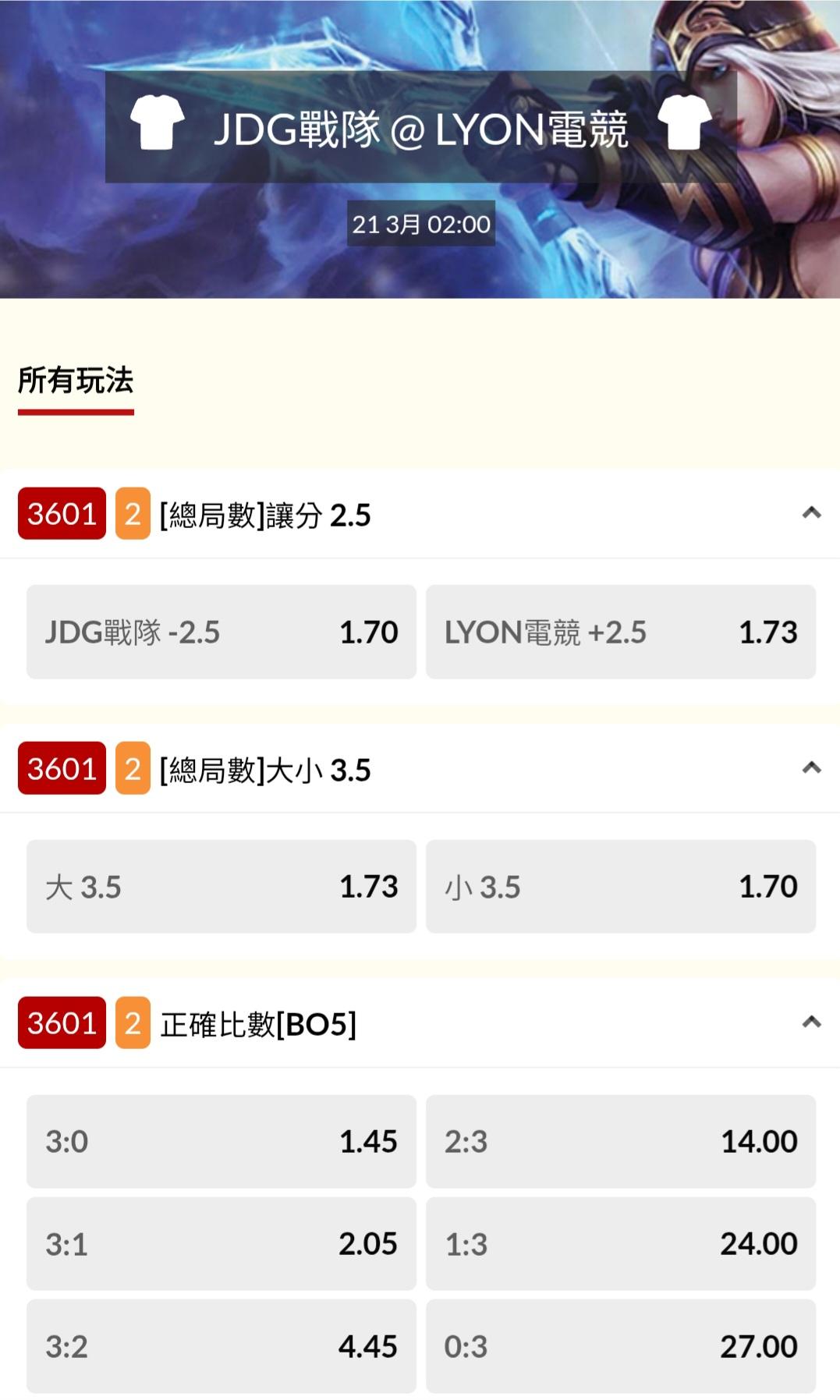 電競 >> 03/20『無懼之狐X @ G2電競』『LYON電競 @ JDG戰隊』