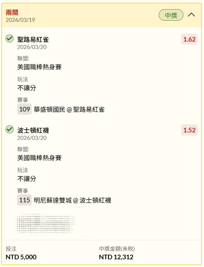 >> 3/20 紅雀紅襪看到紅就押下去