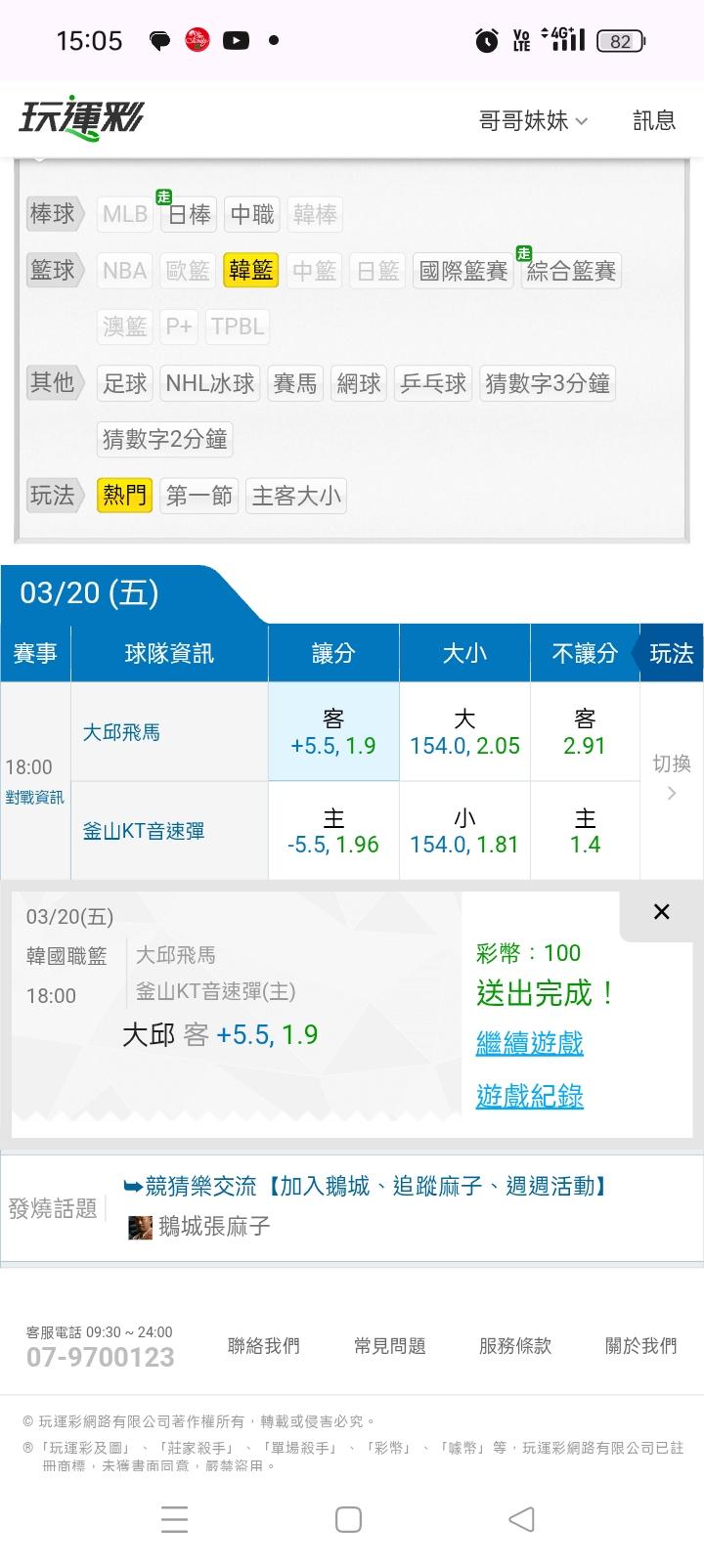韓國職籃 >> 連贏四天國際讓分,主推又贏錢了,一隻輸贏就好🤩🤩🤩