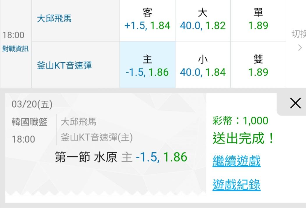 韓國職籃 >> 昨天主推順利收……今天主推一場大小分釘孤支