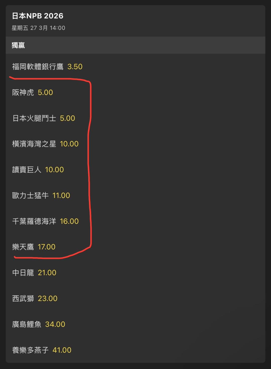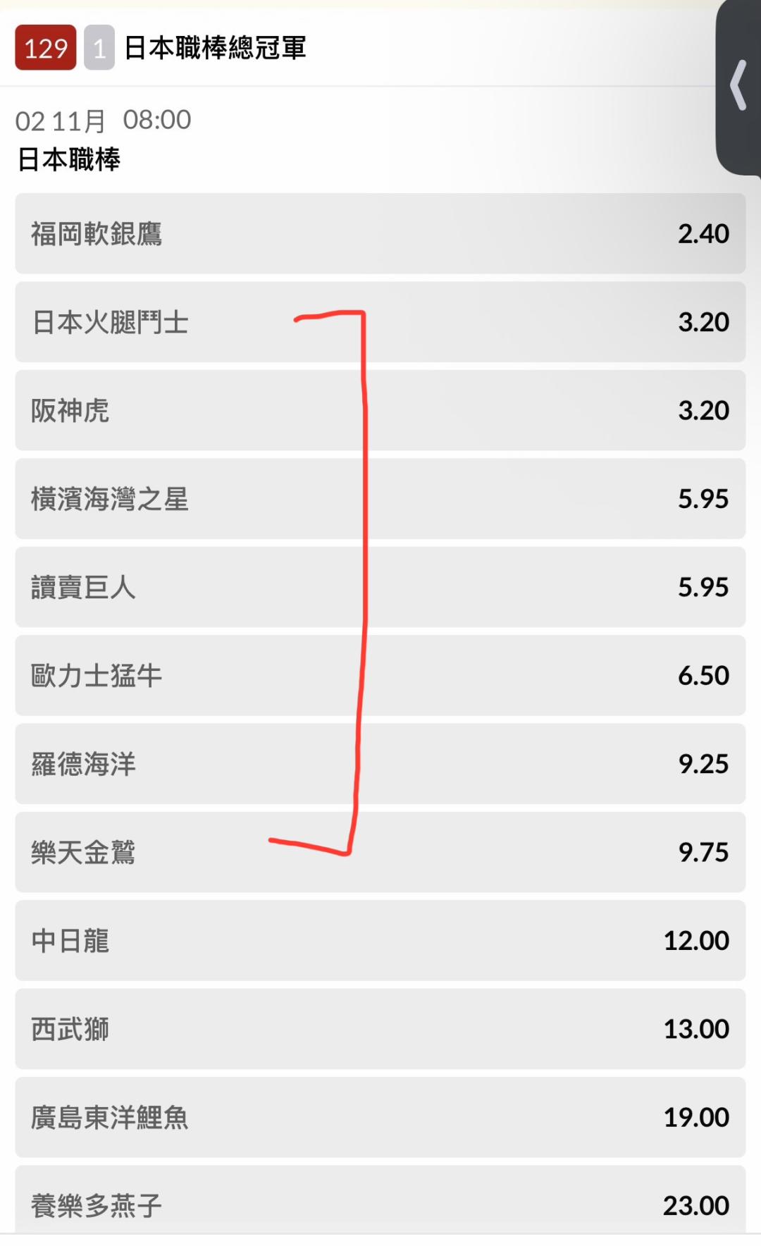 >> 國際盤 運彩 日棒總冠軍(初盤)