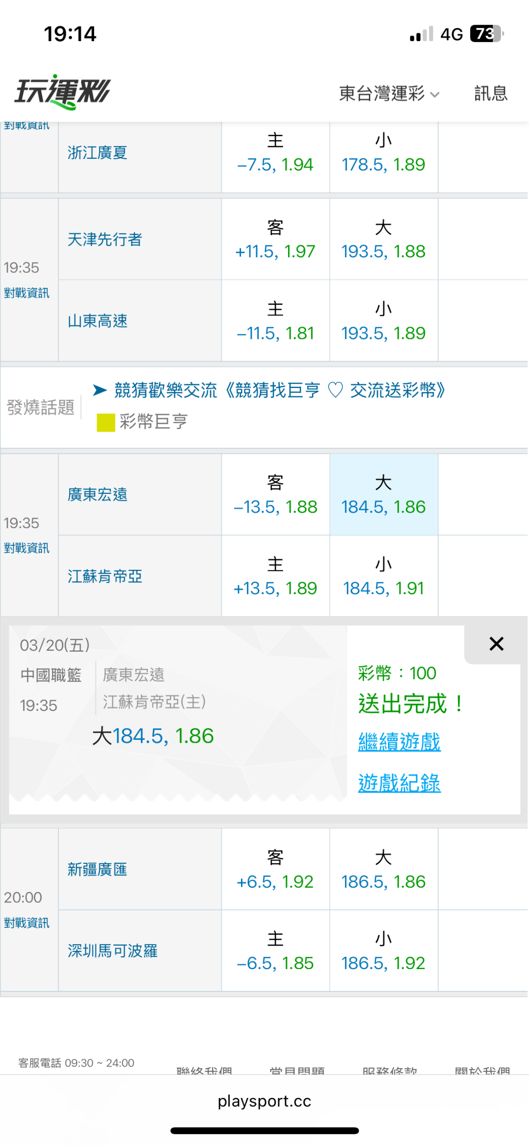 >> 3/20東台中籃國際盤【連贏3天10過7】主推信心滿滿(貓場) 特價79-拼中籃國際盤連贏4天~