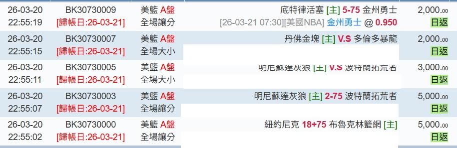 >> 3/21日NBA1場參考(運彩 主推連過4日)