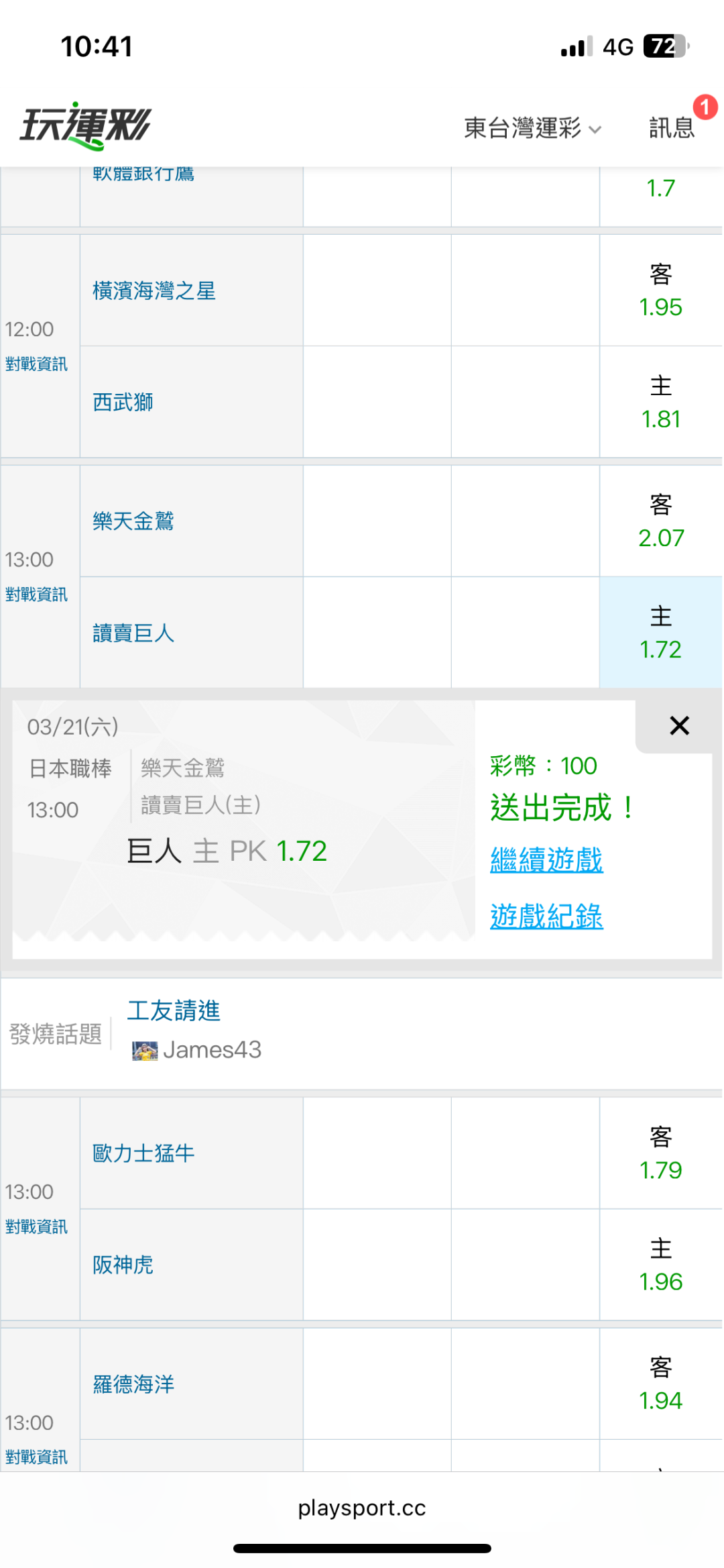 日本職棒 >> 3/21東台日棒國際盤【連贏2天10過8】主推信心滿滿(貓場)特價79-拼日棒國際盤連贏3天~