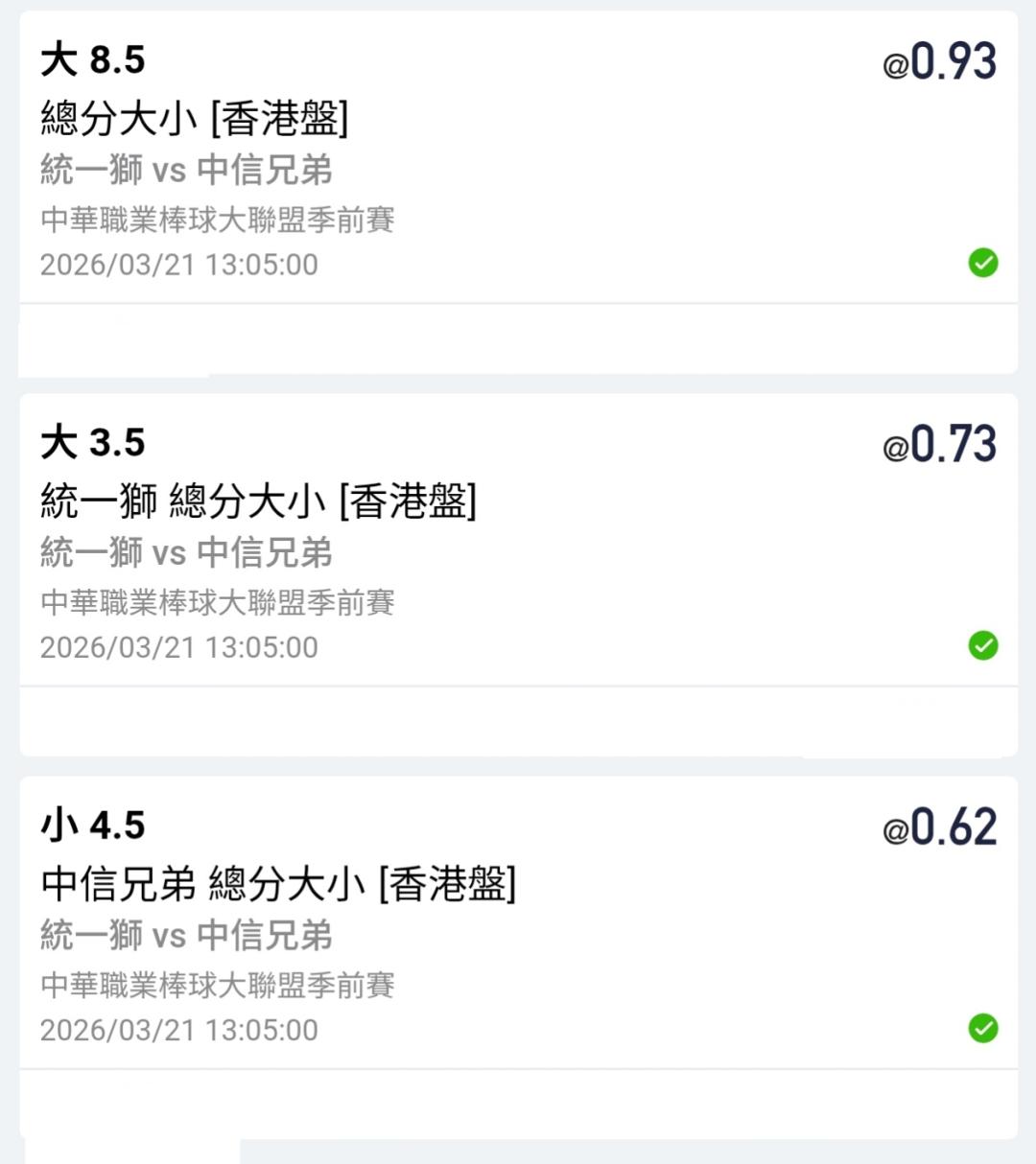 統一6:3,全中