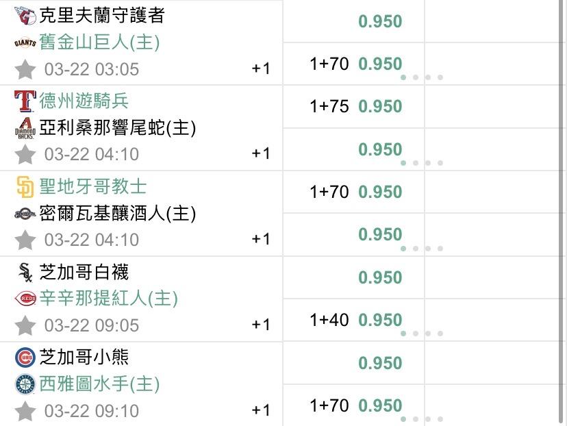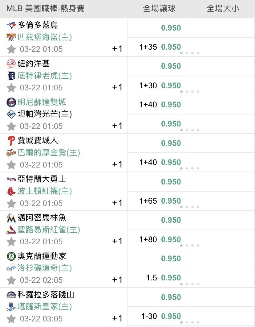 MLB >> 3/22 美棒熱身賽初盤(預祝過盤)