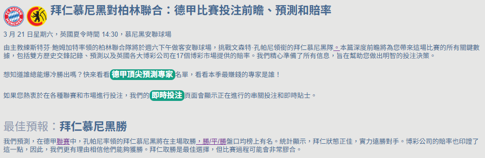 足球 >> (03/21) 運彩:德甲★正比單場★(參考方向、賽事無絕對)