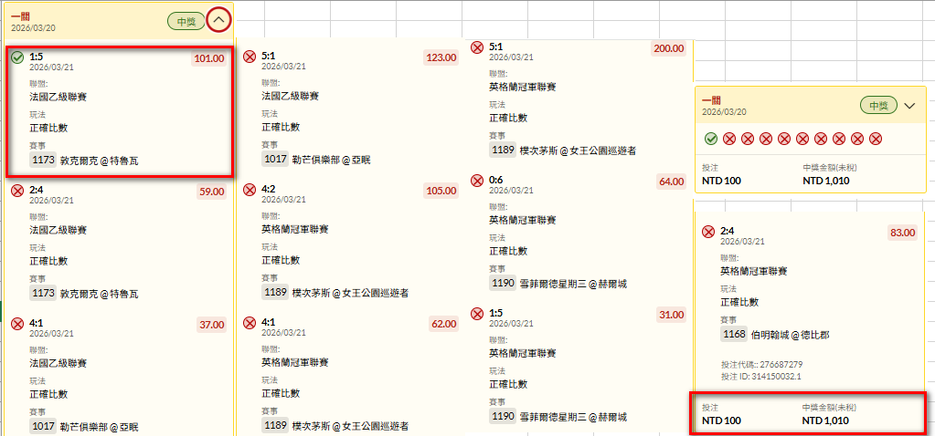 過關炫耀 >> 20260321法乙特魯瓦-登卡基5比1 101倍