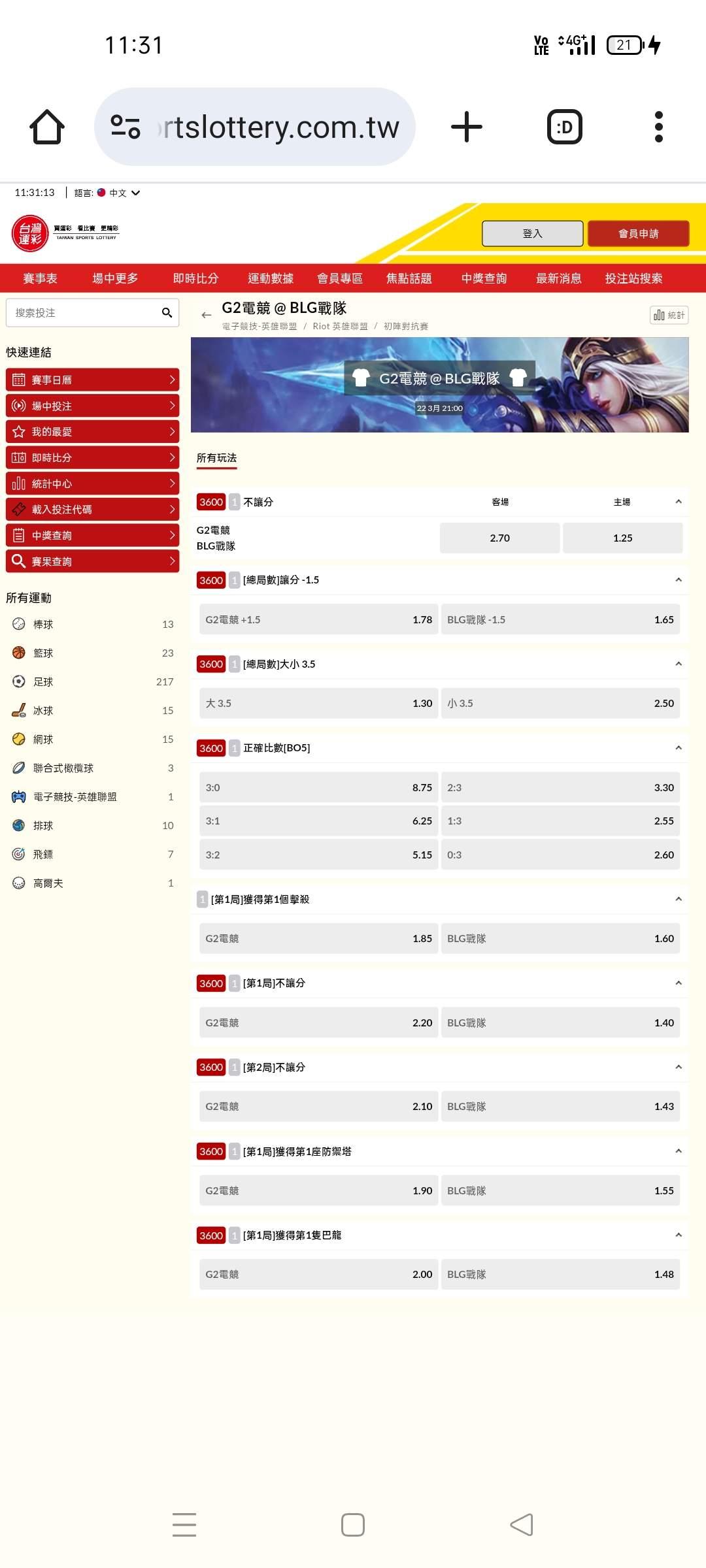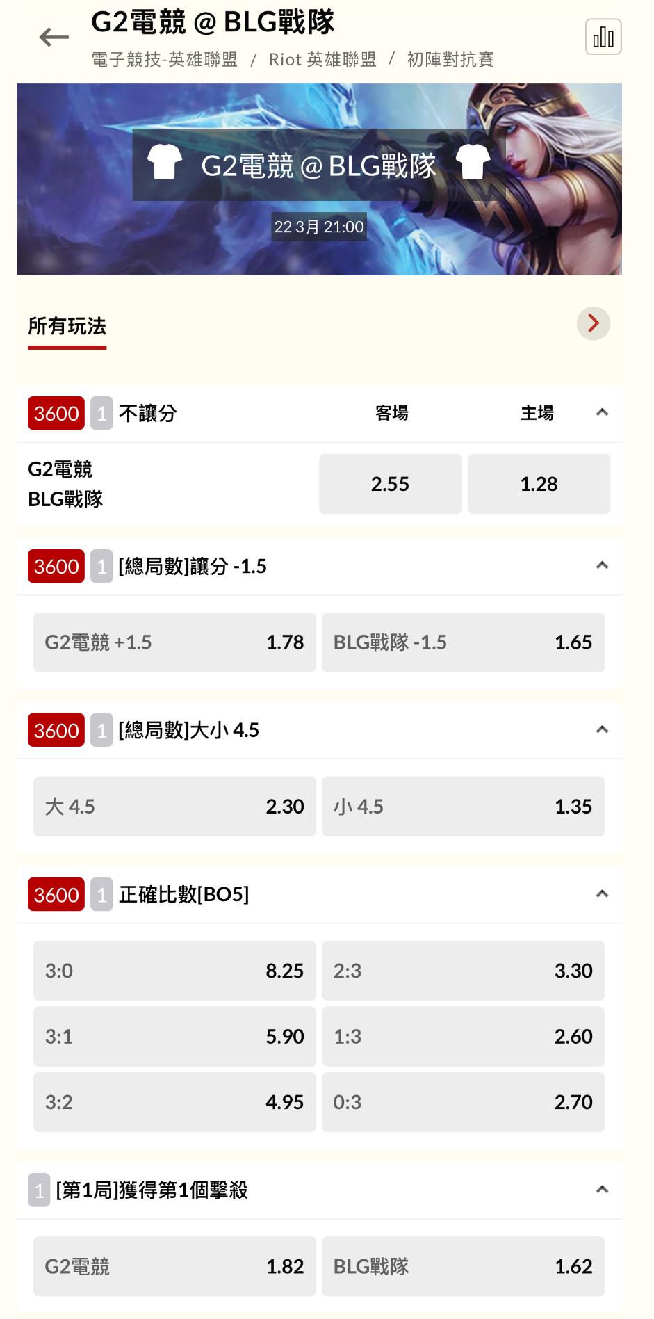 電競 >> 03/22 BLG戰隊 V.S G2電競 先鋒賽冠軍戰