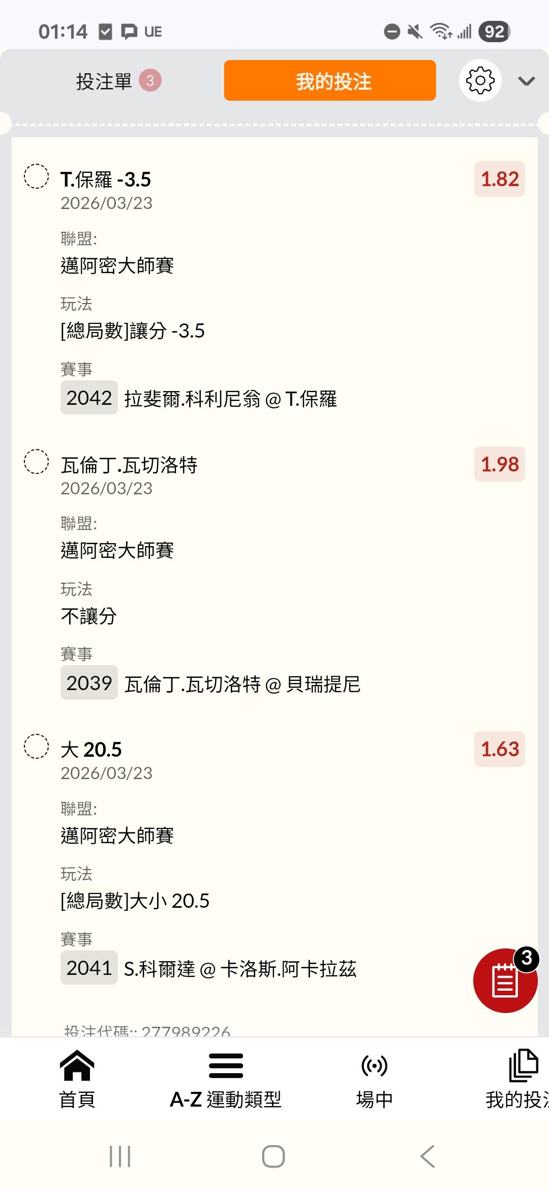 網球 >> 3/22 邁阿密網球公開賽
