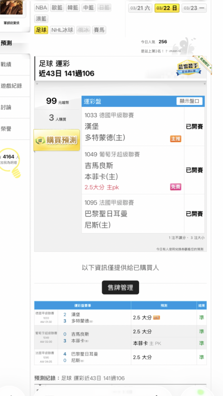足球 >> ⚽️❗️近43日 141過106❗️今日4過4 全轟❗️西甲-皇馬VS馬競